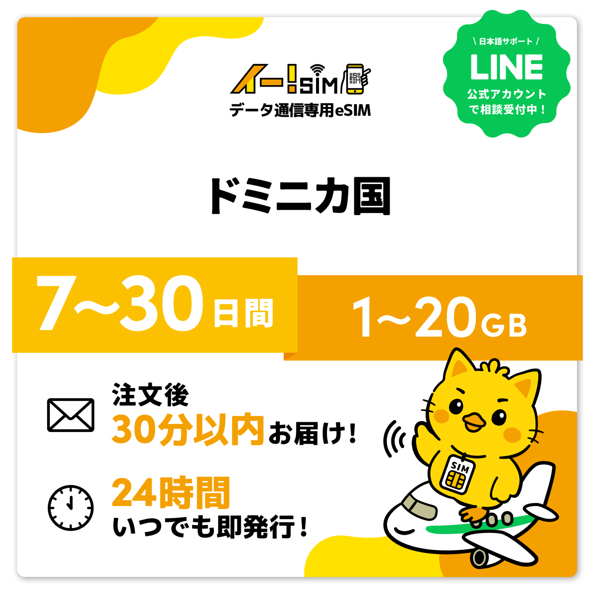 eSIM イー!SIM ドミニカ国 7日~30日間:1GB~20GB