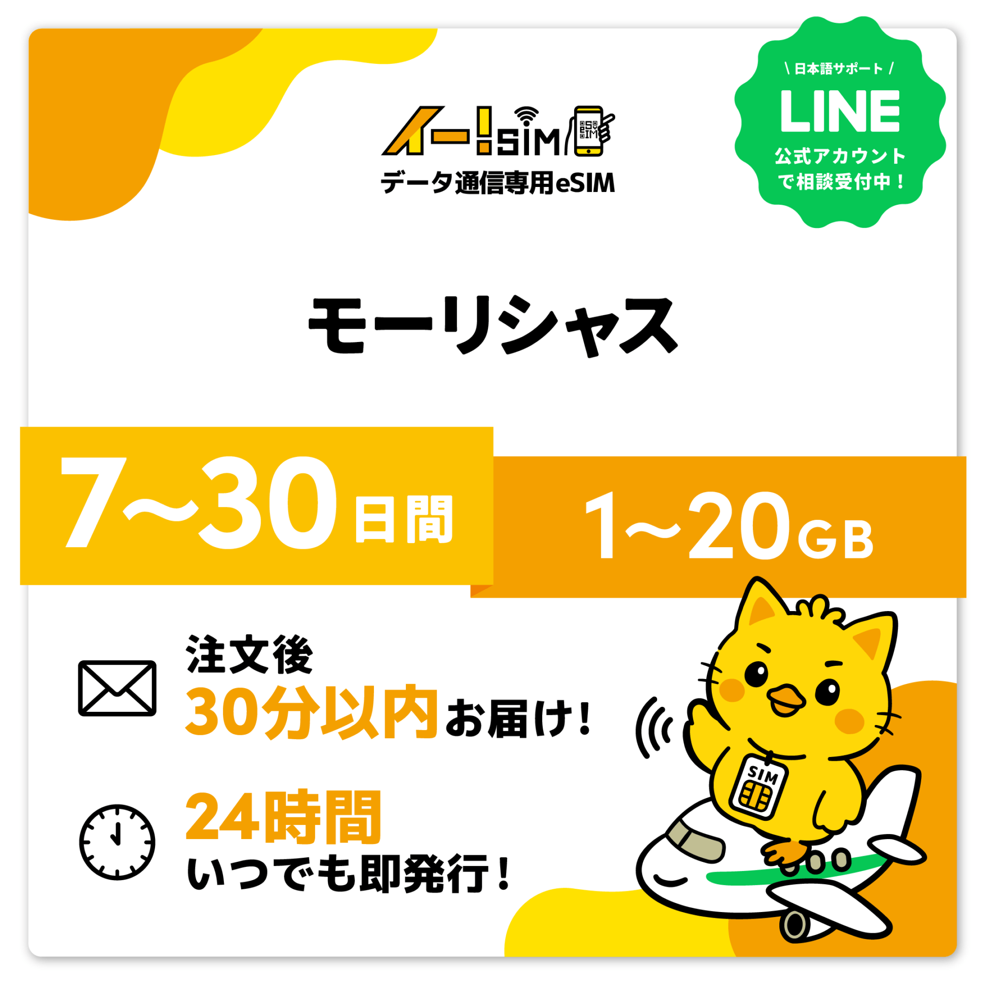 eSIM イー!SIM モーリシャス 7日~30日間:1GB~20GB