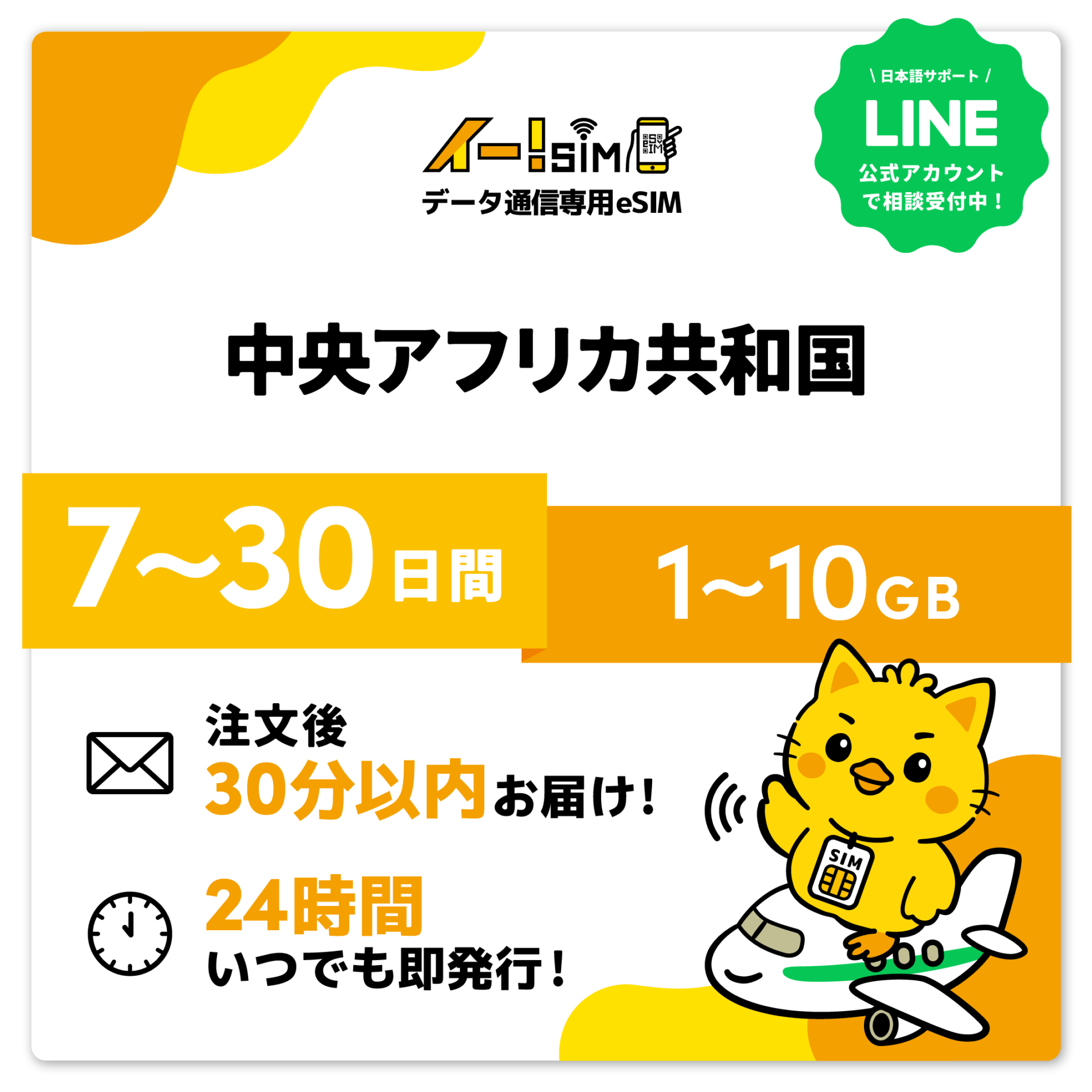 eSIM イー!SIM 中央アフリカ共和国 7日~30日間:1GB~10GB