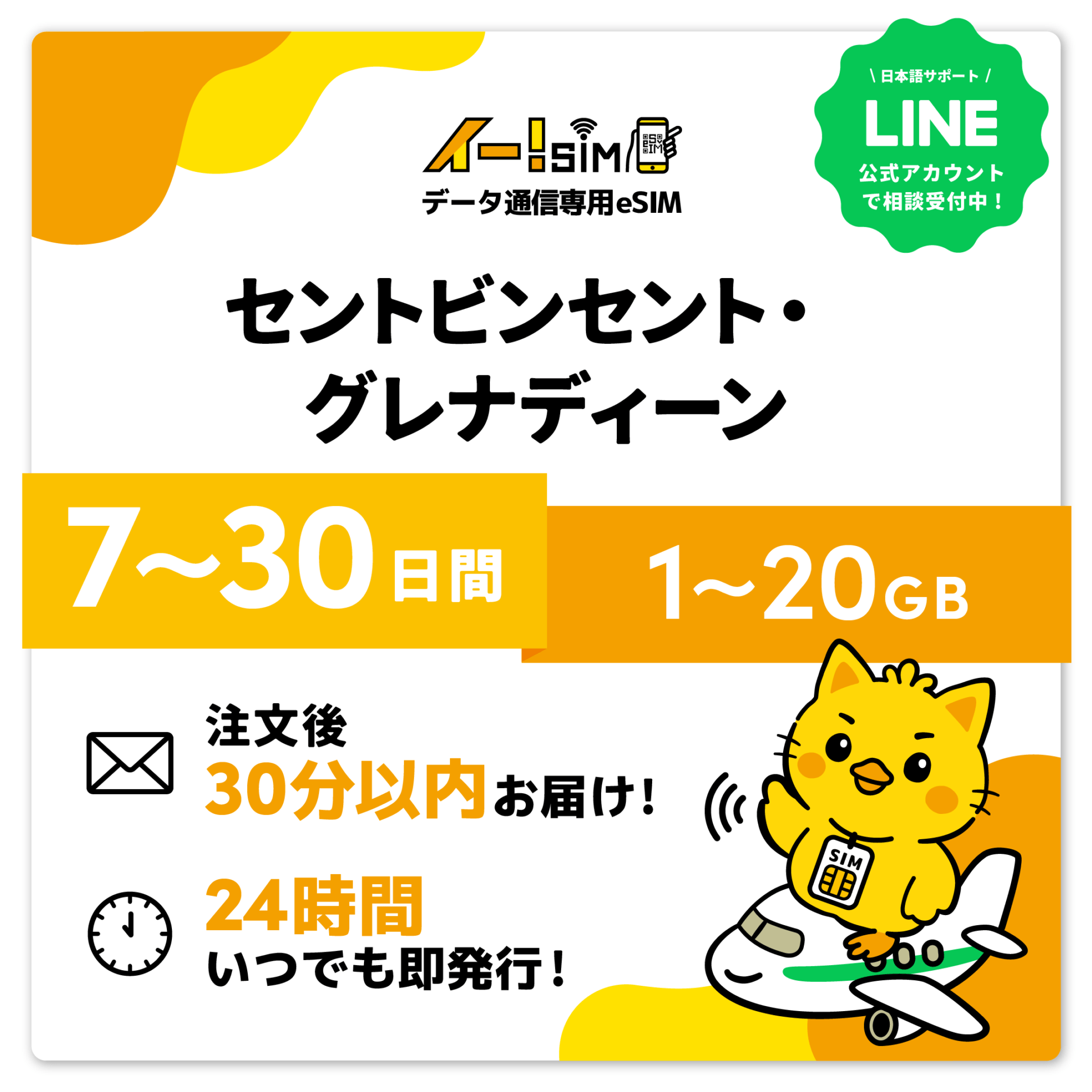 eSIM イー!SIM セントビンセント・グレナディーン 7日~30日間:1GB~20GB