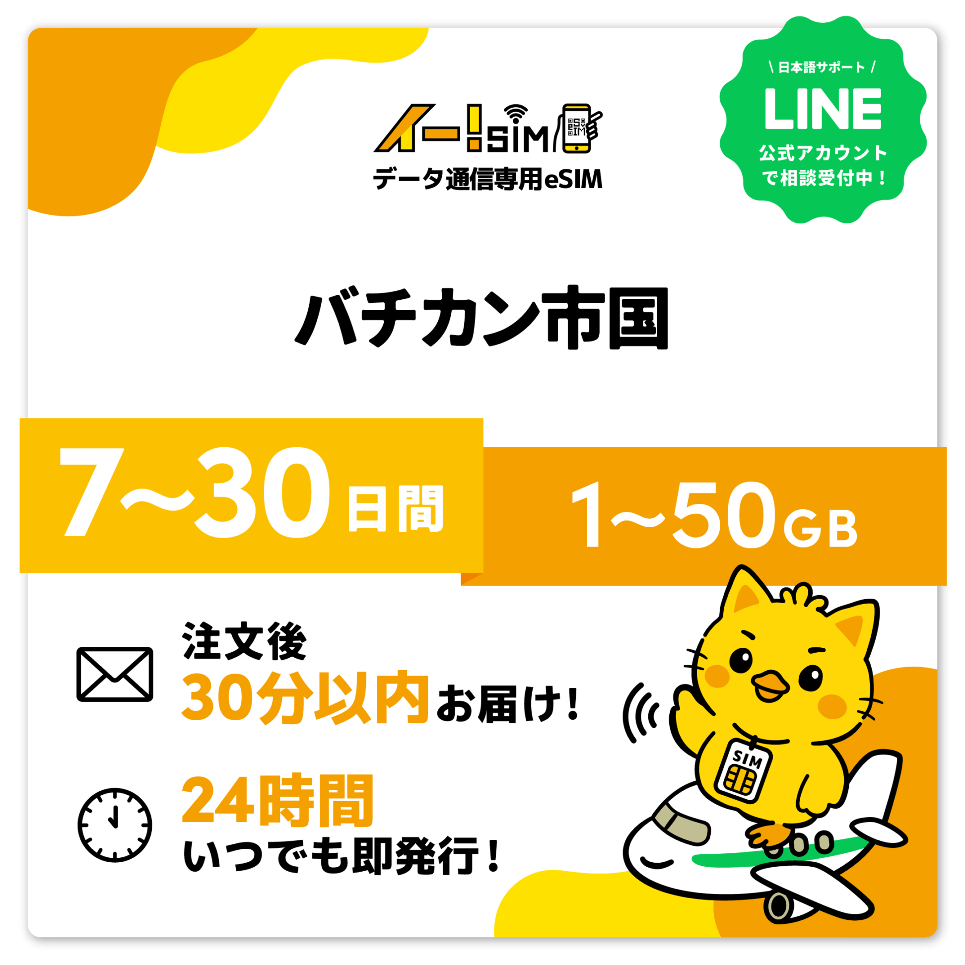 • eSIM イー!SIM バチカン市国 7日~30日間:1GB~50GB