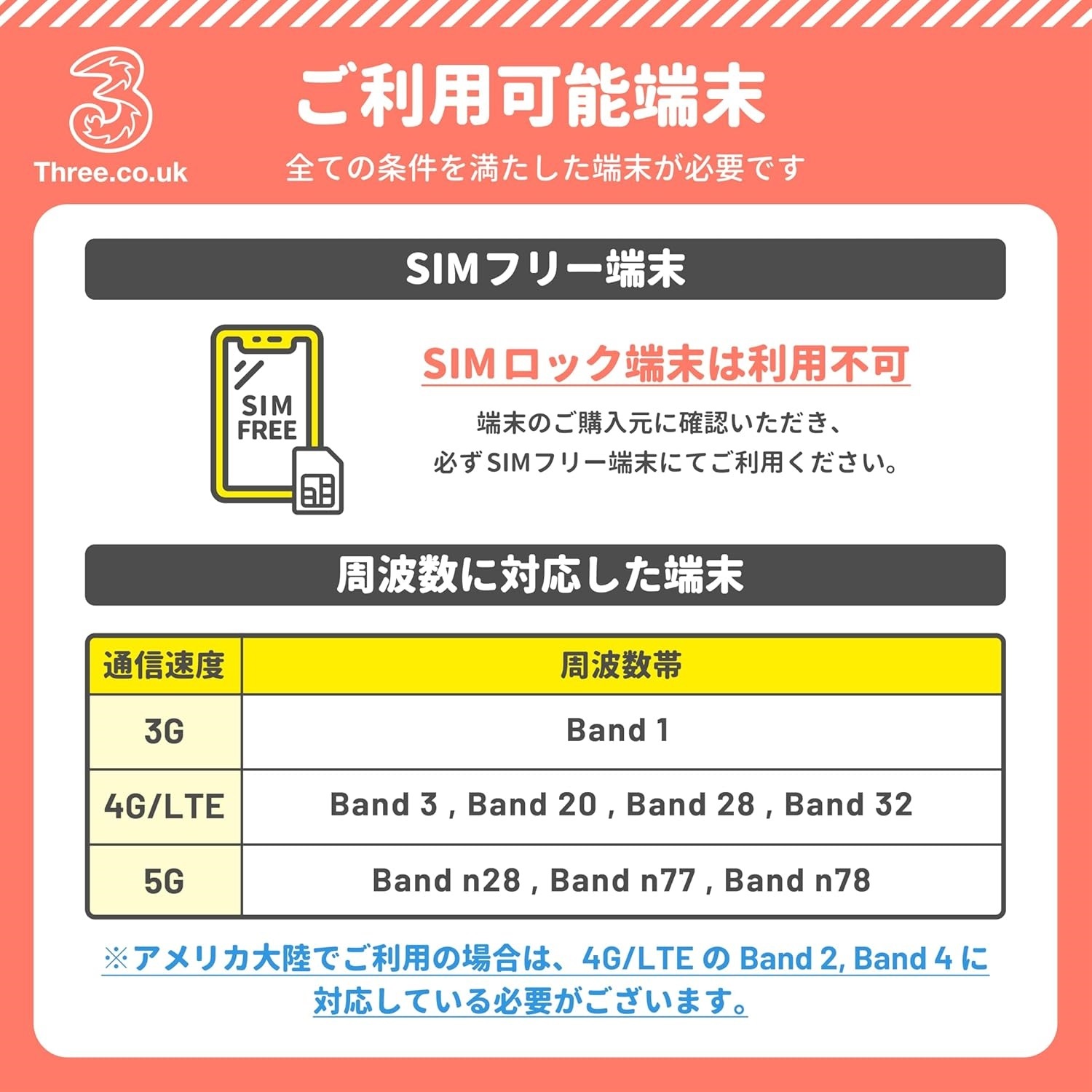 ※アメリカ大陸でのご利用時は以下の使用周波数をご確認ください。